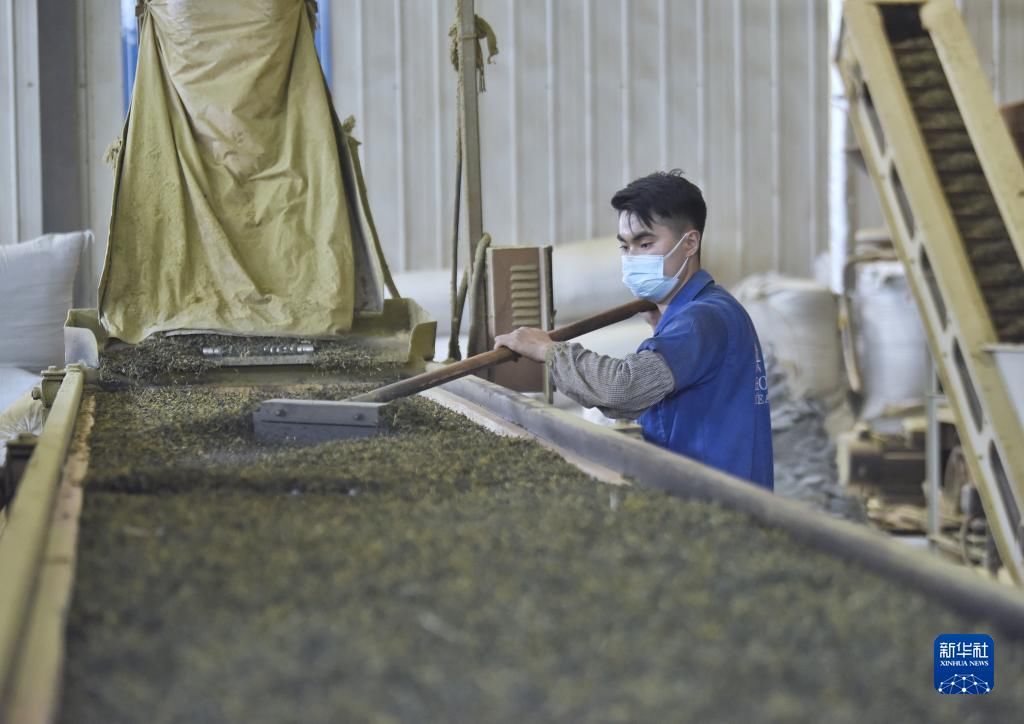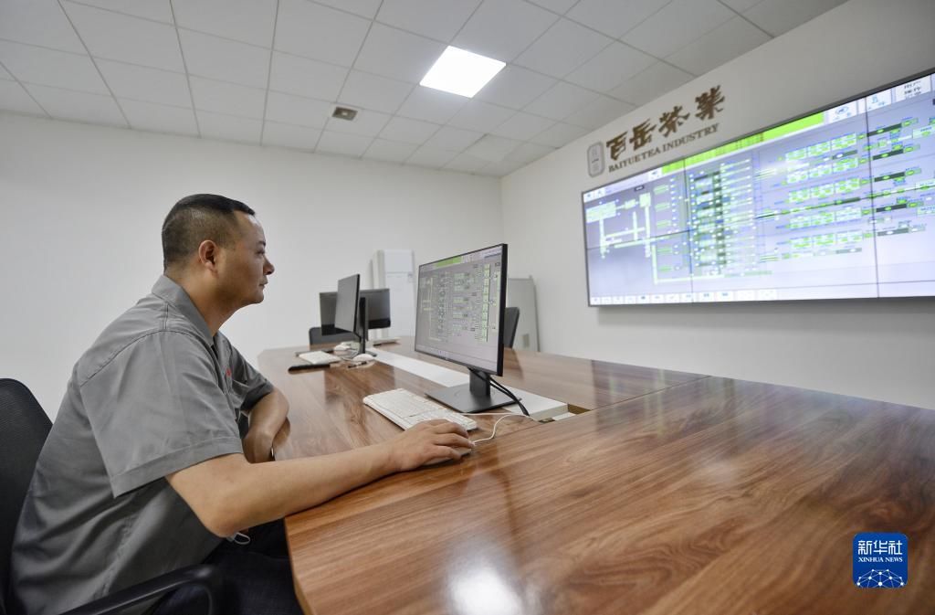 6月7日,百岳茶业总经理薛毅查看设备运转情况。百岳茶业疫情期间停工四天后复工复产,最近公司增加了员工宿舍,以保证紧急情况下能闭环管控继续生产。 新华社记者 刘坤 摄