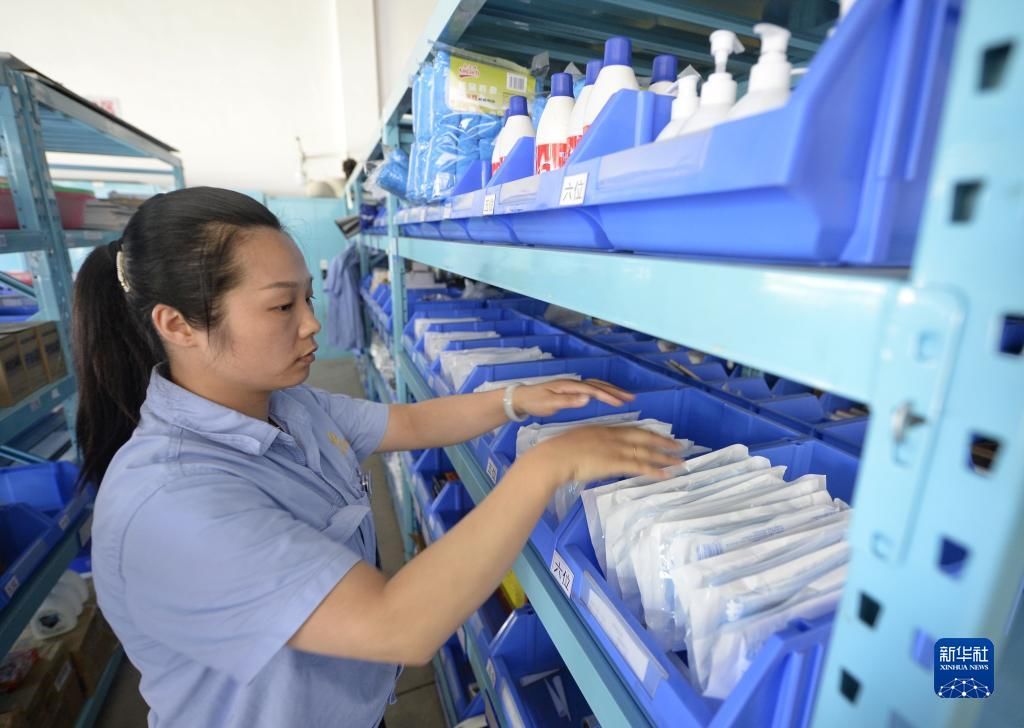 6月7日,四川新万兴碳纤维复合材料有限公司库房保管员在整理防疫物资。 5月17日,四川夹江县因疫情影响,全县实行临时静态管理。夹江县推广以保重点企业正常生产为着力点的“防疫泡泡”管理模式,实现14 家规上企业在抗击疫情前提下正常生产,最大程度减少疫情对工业经济的影响。 据介绍,“防疫泡泡”闭环管理模式,即以企业为最小的防疫单元,企业做好原材料、生活物资、防疫物资储备,政府为企业保障后续物资供应、运输车辆通行等,企业在疫情期间继续进行闭环生产。 记者在近日召开的四川省高效统筹疫情防控和工业稳增长工作电视电话会上了解到,“防疫泡泡”模式在四川多地实践中取得较好效果。 新华社记者 刘坤 摄